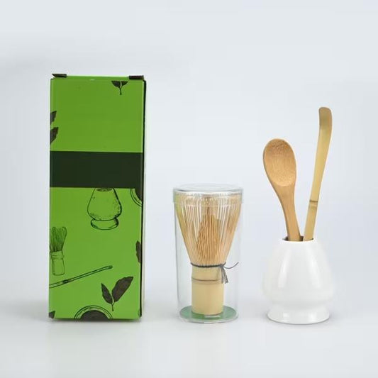 Kit Fouet à Matcha en Bambou avec Support et cuillère, 4 pièces