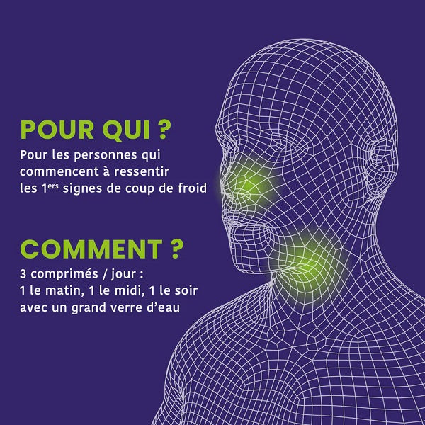 1 comprimé le matin, 1 le midi et 1 le soir avec un grand verre d’eau, pendant 5 jours.