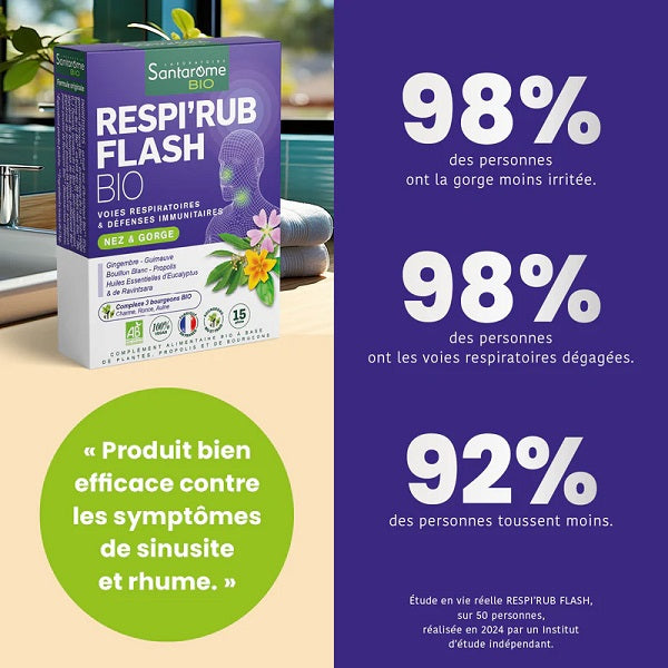 *Étude en vie réelle RESPI’RUB FLASH, sur 50 personnes, réalisée en 2024 par un Institut d’étude indépendant.